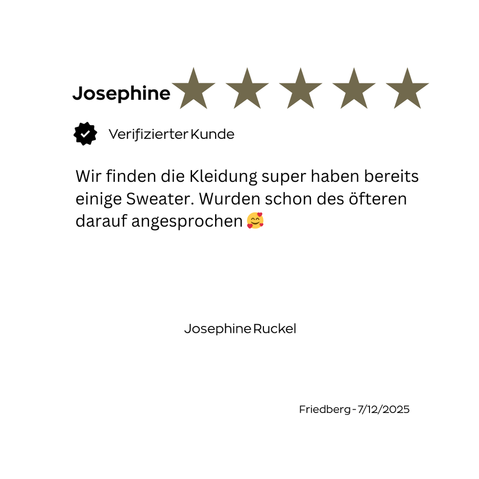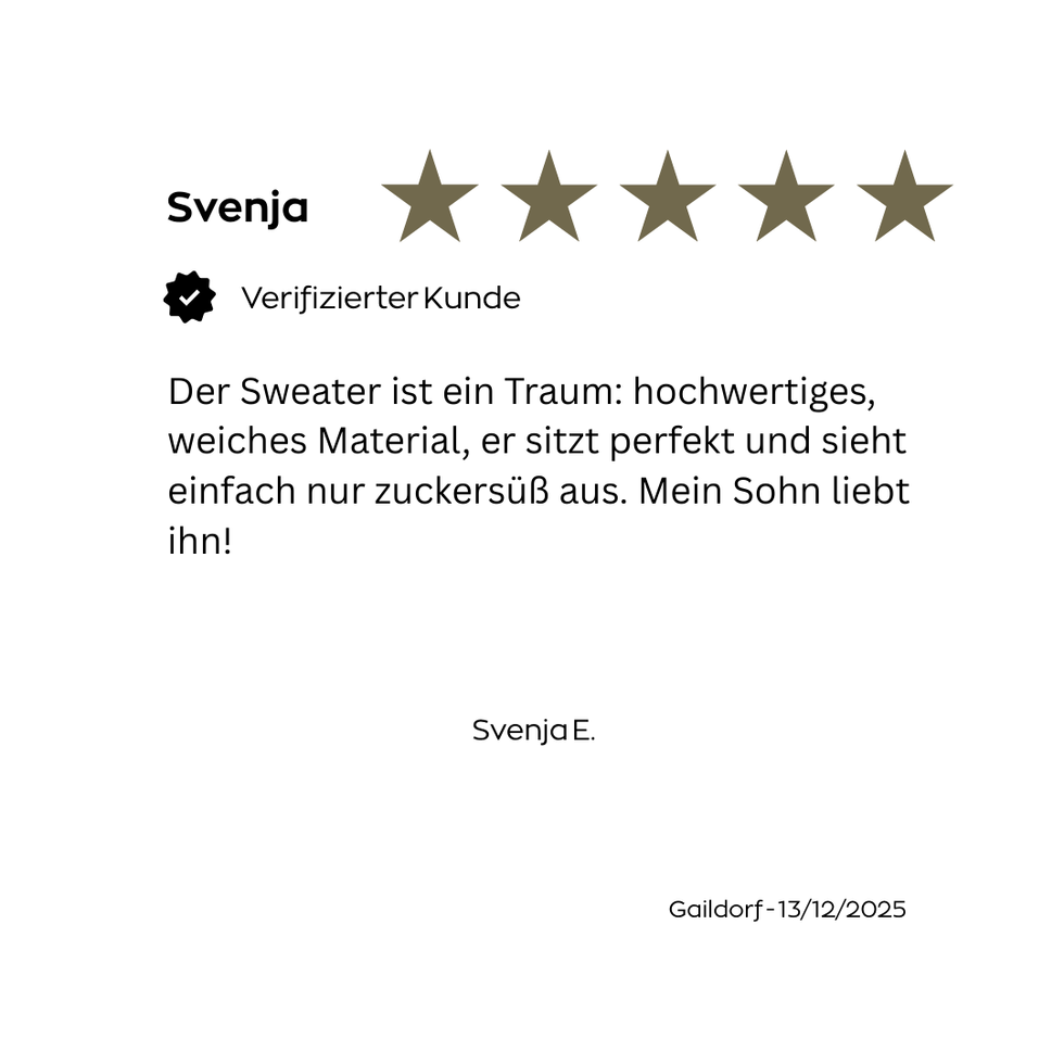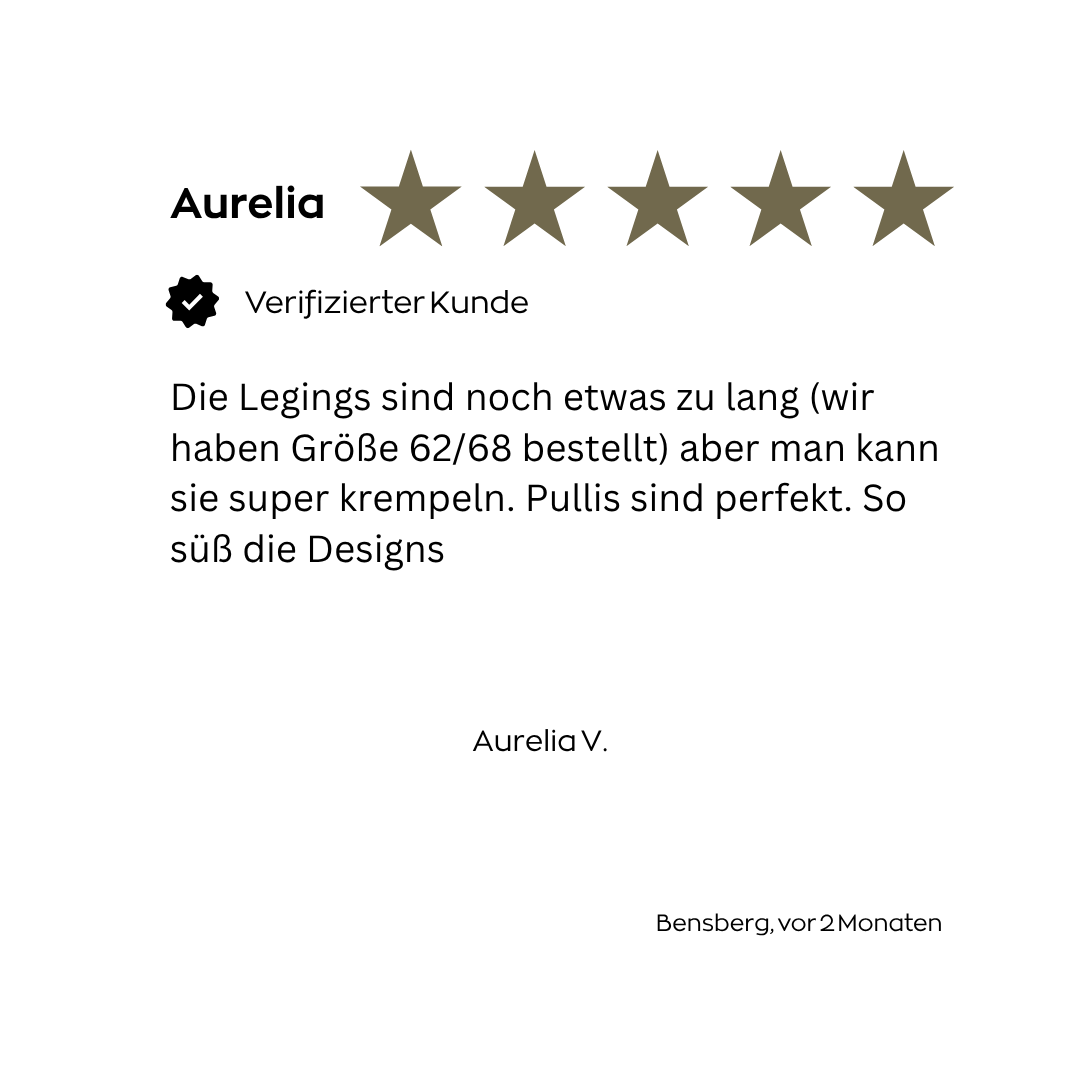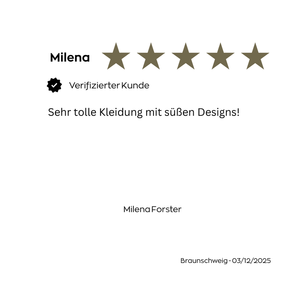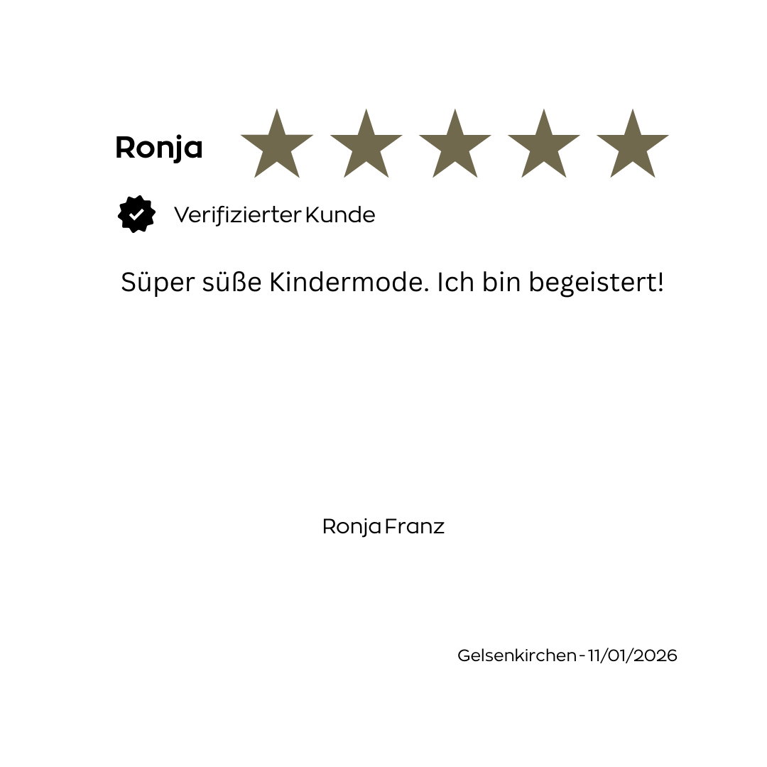 Als Mama weiß ich, wie sich der Alltag mit Kindern anfühlt - chaotisch, wundervoll, voller kleiner Wunder und großen Herausforderungen. Genau daraus entsteht unsere Kleidung, aus dem echten Leben, mit Liebe entworfen und mit Verantwortung gefertigt. Ich wünsche mir Kleidung für Kinder, die nicht nur schön ist, sondern auch bequem, langlebig und fair produziert.